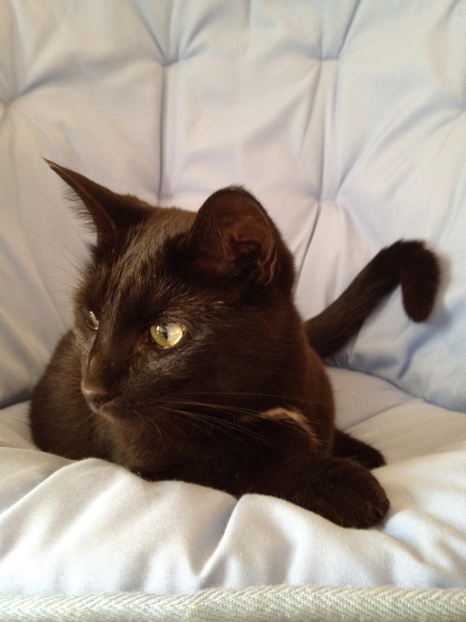 this summer a cute little black cat would come and sit on our porch and watch us eat breakfast every morning. he was clean and kind and chris took a liking to him. i still had the “i’m not an animal person” and at first wouldn’t pick him up or pet him, just let him sit on our porch with us. eventually he made it from sitting on cement of our porch to chris’ lap, but that was all.